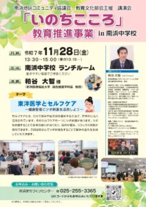 北区南浜中にて中学生・一般の方約100名に「東洋医学とセルフケア」の講演を学生と実施❣