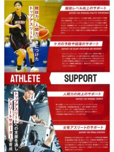 鍼灸健康学科では本大学のアスリートサポートシステムの中で、ケガの予防や回復のサポート、女性アスリートのサポートを行っています。